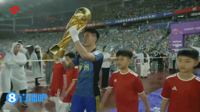 上届苏超冠军泰州队携带冠军奖杯进入球场↓