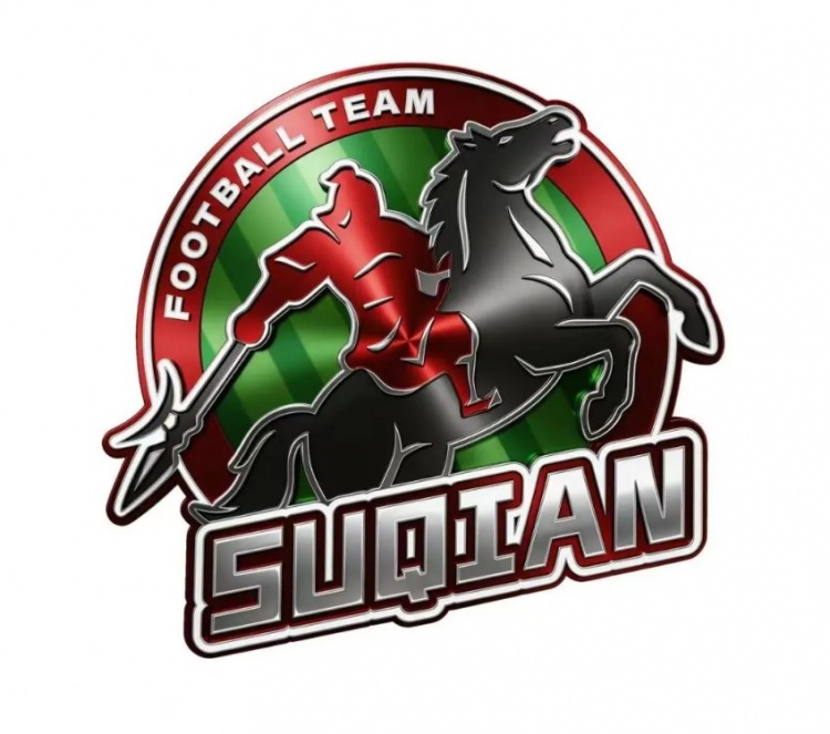 宿迁队队徽以“西楚霸王项羽”为魂,赤、黑二色为魄,将地域文化与足球精神深度融合,熔铸球队铁血军魂。主体为身披红甲的霸王骑乘乌骓马,手持长戟,姿态昂扬,既呼应宿迁“项王故里”的历史底蕴,又彰显球队勇往直前、锐不可当的精神气质。红甲与黑马搭配绿底条纹,既体现霸王勃发英姿,又体现球队驰骋绿茵的霸气与活力。外圈“FOOTBALL TEAM”与底部“SUQIAN”字样,清晰传递球队身份与地域归属,成为城市体育名片的鲜明符号。